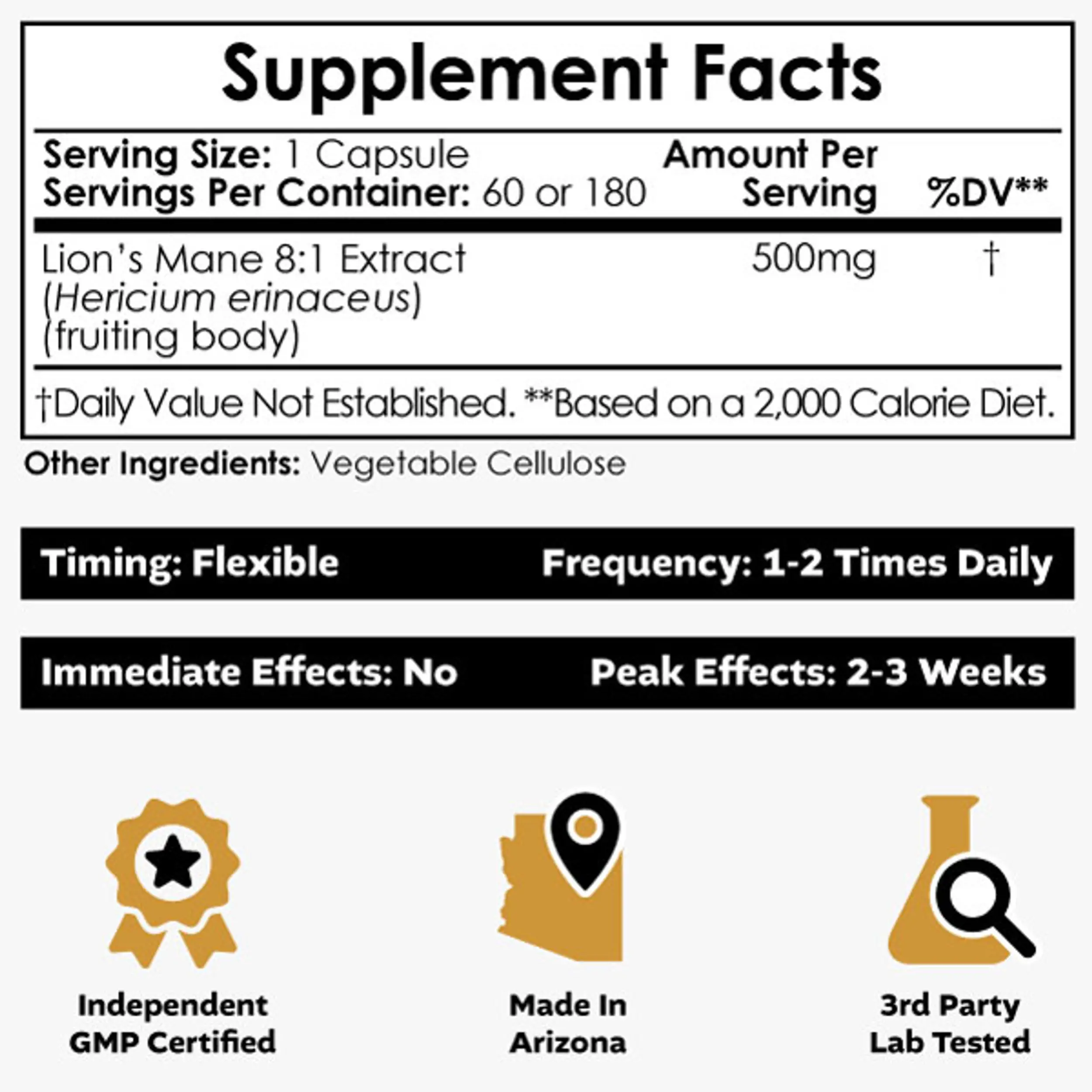 Lion’s Mane Mushroom 8:1 Dual Extract Capsules